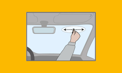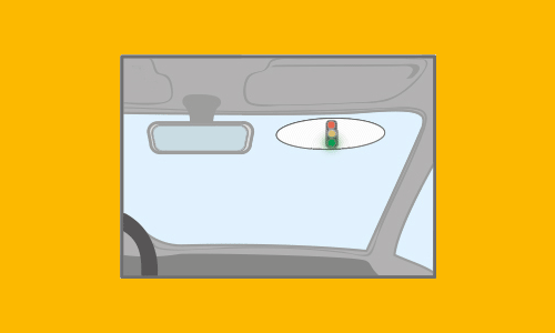 Bei Fahrzeugen mit einer flacheren Frontscheibe bringen Sie die Linse mit der glatten Fläche an die Scheibe und das Linsen-Auge mit der kleinen Kerbe nach oben in der von Ihnen gewünschten Position an.